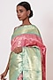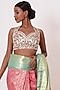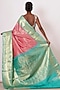 Featuring an onion pink handwoven saree in pure dharmavaram silk base with zari embroidered border. It is paired with an ivory blouse. Accentuate it with statement jewellery and heels for a festive occasion, wedding or sangeet ceremony.