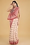 Featuring a peach and red saree in cotton silk base with floral print. It is paired with a blouse. Accentuate with statement jewellery and heels for festive occasions or pooja ceremonies.