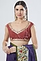 Featuring a pink and purple saree in silk blend base with floral aari embroidery. It is paired with a matching velvet embroidered blouse.