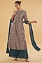 Featuring a teal blue kurta in cotton silk base with floral print. It is paired with a skirt and a dupatta. Accentuate it with statement jewellery and heels for a festive occasion or pooja ceremony.
