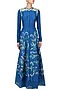 This set features a teal blue kurta in silk base with heave resham floral embroidery all over the flare and zari work on the yoke. It has cotton silk stripe panels around the hem. It is paired with matching teal blue cotton silk palazzo pants.