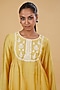 Featuring a yellow kurta in cotton silk base with white floral embroidery. It is paired with pants. Accentuate it with statement jewellery and heels for a festive look.