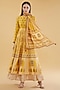 Featuring a yellow lehenga in cotton silk base with floral print. It is paired with a kurta and a dupatta. Accentuate with statement jewellery and heels for festive occasions or haldi ceremonies.