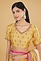 Featuring a yellow saree in cotton silk base with floral print. It is paired with a blouse. Accentuate it with statement jewellery and heels for a festive occasion or haldi ceremony.