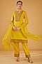 Featuring a yellow kurta in silk blend and viscose base with floral zari embroidery. It is paired with pants and a dupatta. Style it with heavy jhumkas and heels for a festive look.