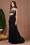 Featuring a black peplum in heavy georgette base with mirror, beads, metallic and sequins embroidery. It is paired with a bustier having a square neckline and palazzo pants. Accentuate it with zircon earrings and heels for a festive occasion or sangeet ceremony.