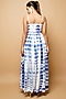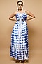 Featuring a blue and white overlapped dress in cotton silk base with tie-dye print, handmade pearl strap and slit.