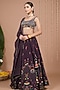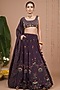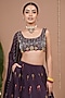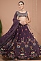 Dark Purple Natural Crepe Motif & Sequin Embroidered Flared Lehenga Set