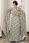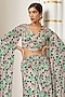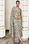 Featuring a green draped skirt in heavy crepe base with a front slit and floral print. It is paired with a corset belt bustier having cape sleeves, mirror, zardosi, moti and salli work. Style it with dangler earrings and heels for a festive look.