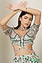 Featuring a green kali lehenga in heavy georgette base with crystal hangings, moti, sequins, zardosi, mirror and resham hand work, including floral print. It is paired with a padded bustier and a dupatta having zari lace borders. Style it with dangler earrings and heels for a festive look.