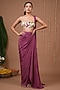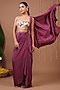 Plum Natural Crepe Pre-Draped Skirt Saree Set