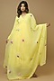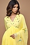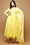 Featuring a yellow anarkali in modal cotton base with moti, cutdana and resham hand work. It is paired with matching palazzo pants and an organza hand painted dupatta having hand work.