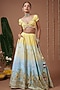 Yellow & Firozi Natural Crepe Digital Printed Flared Lehenga Set