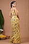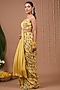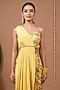 Featuring a yellow lehenga in natural crepe base with digital print and an attached cancan. It is paired with a draped bustier having a halter neck, cross tie-up detail, embroidered belt and back loop closure. Accentuate it with polki jewellery and heels for a haldi or wedding ceremony.