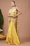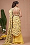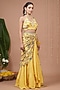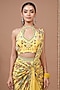 Featuring a yellow pre-draped skirt saree in natural crepe base with floral digital print. It is paired with a sleeveless halter blouse having embroidery. Accentuate it with polki jewellery and heels for a haldi or wedding ceremony.