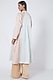 Featuring a sky blue and peach jacket in modal silk base with box pleats and fabric buttons. This contains only one piece.