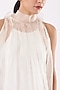 Featuring a white maxi dress in silk organza and sheer base with pleated high-neckline, a tie-up at the neck. It is paired with a matching cotton slip.