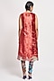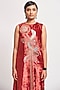 Featuring an auburn red kurta in velvet base with applique embellishments. It is paired with printed dupion churidar pants. Accentuate with dangler earrings and heels for a festive look.