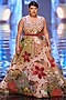 Featuring a beige sleeveless gown in tulle base with applique embellishments.