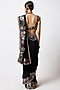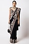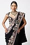 Featuring a black saree in mulberry crepe base with applique embellishment. It is paired with a blouse. Accentuate it with statement jewellery and heels for a sangeet ceremony.
