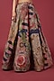 Featuring a blue lehenga in indian organza base with print and embellishment. It is paired with a matching blouse and a scalloped net dupatta.