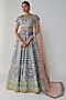 Featuring a blue lehenga in tissue base with embellishments. It is paired with a blouse and a dupatta. Accentuate this designer lehenga set with statement jewellery and heels for your wedding or engagement ceremony.