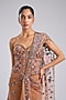 Cantaloupe Tulle Applique Embellished Draped Saree Set