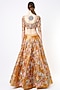 Featuring a copper lehenga in tissue and brocade base with applique embellishments. It is paired with a matching blouse and a dupatta.