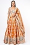 Featuring a copper lehenga in tissue base with applique embellishments. It is paired with a matching blouse and a cutwork dupatta.