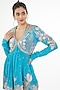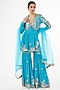 Featuring a cyan blue kurta in mulberry crepe base with applique embellishments. It is paired with gharara pants and an organza dupatta. Accentuate it with statement jewellery and heels for a festive occasion or wedding ceremony.