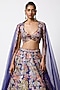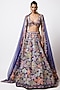 Featuring an electric blue lehenga in kasab satin base with print and applique embellishment. It is paired with a cutwork blouse and a tulle net dupatta. Accentuate it with statement kundan jewellery and heels for a wedding, sangeet or engagement ceremony.