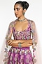 Featuring an eminence lehenga in raw silk base with applique embellishments. It is paired with a blouse and a tulle dupatta. Accentuate statement jewellery and heels for a wedding or sangeet ceremony.