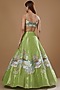Featuring a green lehenga in tissue base with divergence print and embellishments. It is paired with a contrasting blouse and a net floral dupatta.