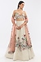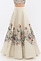 Featuring an ivory lehenga in raw silk base with applique embellishments. It is paired with a blouse and a tulle dupatta. Accentuate it with statement jewellery and heels for a wedding or engagment ceremony.