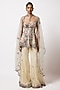 Featuring an ivory short panelled kurta in tulle net base with applique embellishment. It is paired with sharara pants and a dupatta. Accentuate it with kundan polki jewellery, embellished heels and a potli bag for a complete look, perfect wear for weddings, sangeet or engagement ceremony.