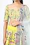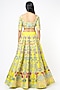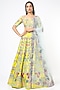 Featuring a lemon yellow lehenga in raw silk base with applique and heavy kali embellishment . It is paired with a matching blouse and a cutwork dupatta.