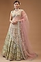 Featuring a lime green lehenga in tissue base with mirror work and embellishments. It is paired with a matching blouse and a dupatta.