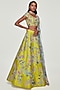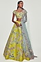 Featuring a lime lehenga in raw silk base with applique embellishment. It is paired with a blouse and a cutwork dupatta. Accentuate it with statement jewellery and heels for daytime weddings, haldi ceremonies, or festive celebrations.