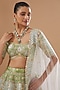 Featuring a lime kalidar lehenga in tissue base with embellishment. It is paired with a matching blouse and a dupatta.
