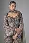 Featuring a lush green short kurta in raw silk and tulle base with a sweetheart neckline, tassel detail and applique embellishments. It is paired with gharara pants and a dupatta. Accentuate it with diamond jewellery and embellished heels for a festive occasion, sangeet, engagement or wedding ceremony.