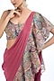 Magenta Purple Mulberry Crepe & Organza Printed Pre-Stitched Saree Set
