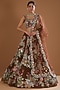Featuring a maroon trencadis lehenga in net and brocade base with applique embellishments. It is paired with a matching blouse and a dupatta.