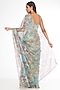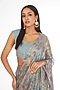 Misty Blue Tulle Printed Sequin Lehenga Saree Set