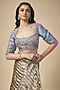 Featuring a multi-colored saree in banarasi tissue brocade base with embellishment. It is paired with a blue tissue blouse. Accentuate it with traditional gold jewellery and a sleek bun for a stylish ensemble, ideal for a wedding or engagement ceremony.