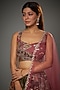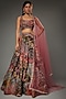 Featuring a multi-colored lehenga in indian organza base with print and embellishments. It is paired with a matching blouse and a contrasting net dupatta.