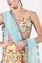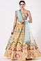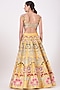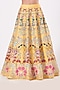 Featuring a pale yellow kalidar lehenga in raw silk base with applique embellishments. It is paired with a matching blouse and a dupatta.