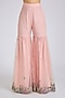 Featuring a pastel pink short panelled kurta in tulle base with applique embellishments. It is paired with sharara and a dupatta. Accentuate it with statement chandbali earrings and embellished sandals for a stylish ensemble, ideal for sangeet or wedding ceremonies.