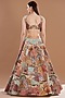 Featuring a peach kalidar lehenga in kasab satin base with divergence print and embellishments. It is paired with a matching blouse and a dupatta.