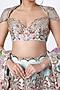 Featuring a powder blue lehenga in raw silk base with applique embellishments. It is paired with a matching blouse and a tulle dupatta having cutwork.