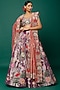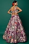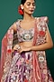 Featuring a purple lehenga in tissue base with applique embellishments. It is paired with a matching blouse and pink dupatta.
